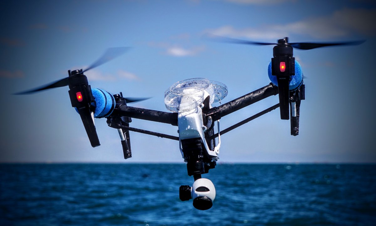 In Mexico we wanted to explore two avenues of Snot collection, the first was to use a number of different Snot collection devices on a pole (trying to get out of the downwash) and the second was to use the drone rotor circulation or vortex’s to collect snot for us, taking advantage of the prop wash as against fighting it.  The DJI Phantom 4 was perfect for attaching poles and different payloads.  The thin body of the DJI Inspire 1 (as against the typical round body) meant that we could put Petri Dishes on the top of the Inspire and collect snot as it was sucked in by the blades and pushed down along the thin body (see photo).