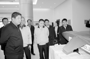 Mr. Zhao Jianqing, CEO of Xiamen Milestone Group, shows guests the Unmanned Aircraft