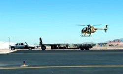 A week ago, the Unmanned Littlebird performed its first landings on a moving platform to simulate on-deck operations. The 16 X 16-ft. platform—equipped with a NATO-standard 1.8-meter (5.9-ft.) helicopter landing grid—is towed by a truck representing speeds up to 20 kt. The demonstrations are being conducted at the commercial spaceport in New Mexico because of range considerations.