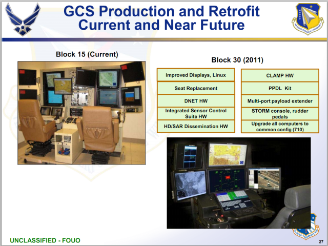 Photos of US ground control systems taken in 2009 (top of article) and 2011 (below) provide evidence of the change – in the earlier picture the Windows desktop GUI can be easily discerned whereas the latter slide indicates the new systems are Linux-based and have “improved displays”.