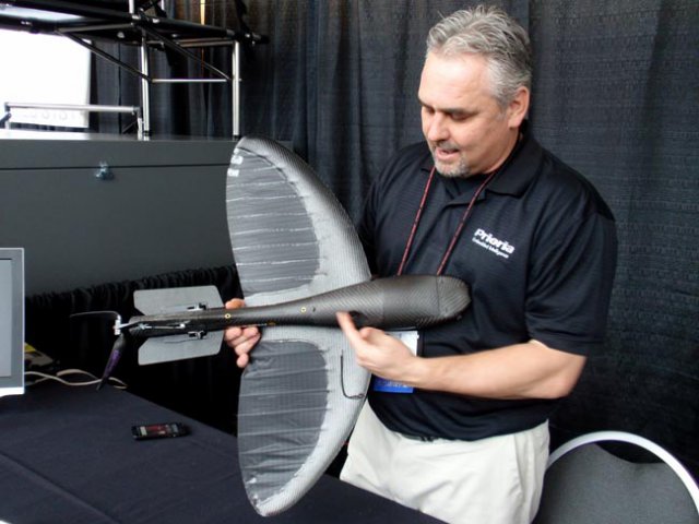 Wright says his small battery-powered Maveric airplane can transmit high-definition video or infrared images to a ground controller. He says the unmanned aircraft are much, much cheaper to acquire and operate than traditional aircraft.