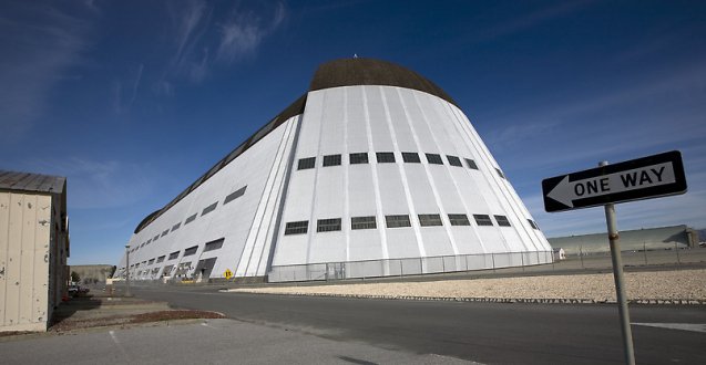This photo shows Moffett Field Hanger One at Moffett Field in Mountain View, California, on Friday, Dec. 21, 2007. Navy veterans were fighting their former employer to preserve one of the oldest symbols of technology in California’s Silicon Valley. Moffett Field’s Hangar One was built in 1932 to house the USS Macon, a helium-filled airship slightly smaller than the Hindenburg, that crashed in 1935. The hangar, 198 feet high and big enough to hold 10 American football fields, is a familiar sight on Highway 101 that runs through Silicon Valley. The building is leaking carcinogens and may be too expensive to save.
