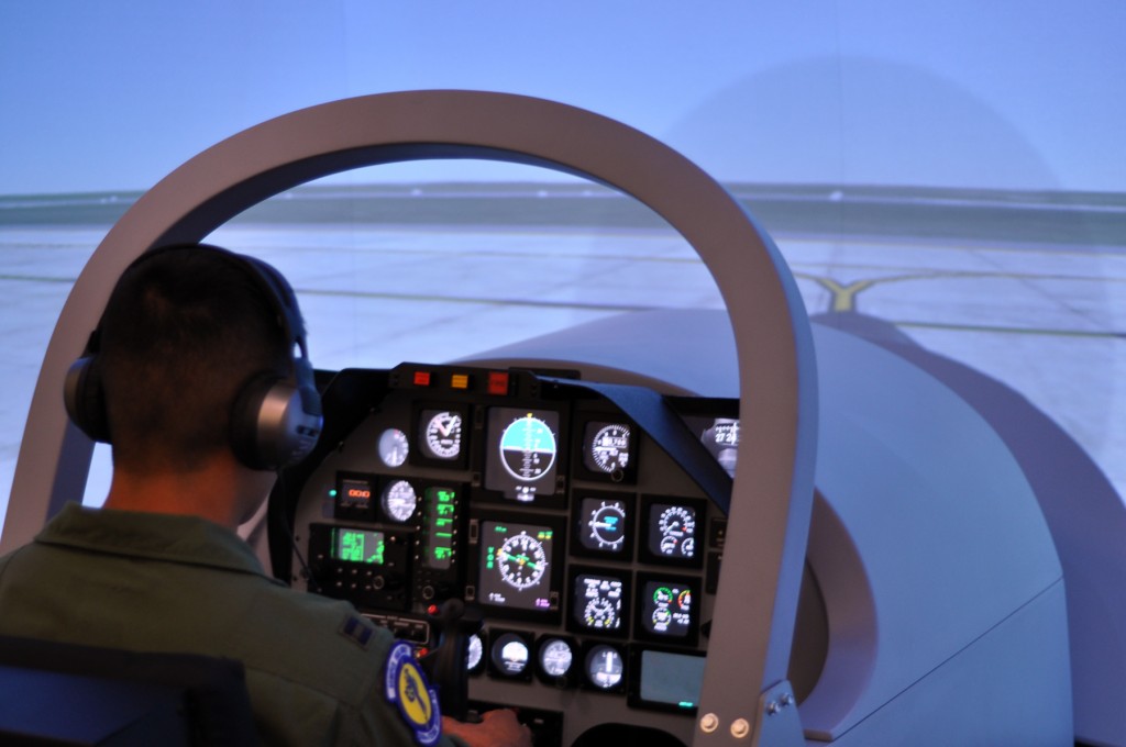 “These simulators use high-end desktop computers with powerful graphics cards to display the T-6 cockpit and instrument displays,” said Lt. Col. Scott Cerone, 558th Flying Training Squadron commander. “Real-world surroundings are projected from three high-powered projectors to give the pilots a 180-degree view of the world outside their cockpits.”