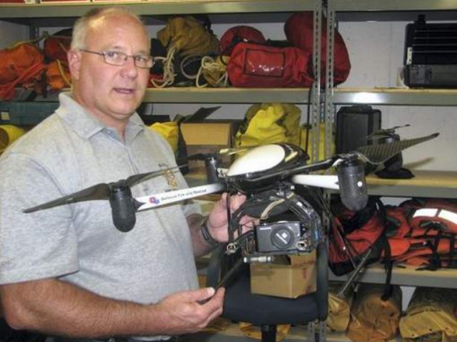 Photo: Bellevue Fire Department Battalion Chief Kurt Strachota with Draganflyer