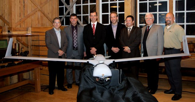 Photo: The Insitu/Boeing team and the museum’s chief curator Dan Hagedorn gather around ScanEagle following the donation ceremony.