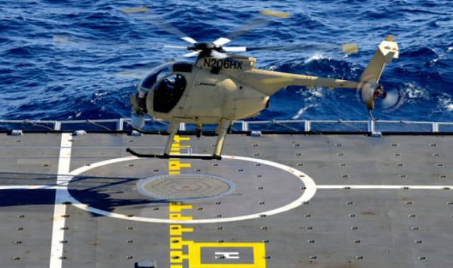 Thales, EADS-Astrium and Indra are among a growing number of European companies developing automatic VTOL systems for unmanned rotorcraft operating in challenging sea-state environments. In October, under the D2AD project, French defence equipment agency DGA completed a four-year demonstration of unmanned rotorcraft capable of landing onboard ships in difficult weather conditions. The project culminated in 30 successful takeoffs and landings of a Boeing H-6U Unmanned Little Bird on the Lafayette-class frigate Guepratte off Toulon Sept. 24-Oct. 4.