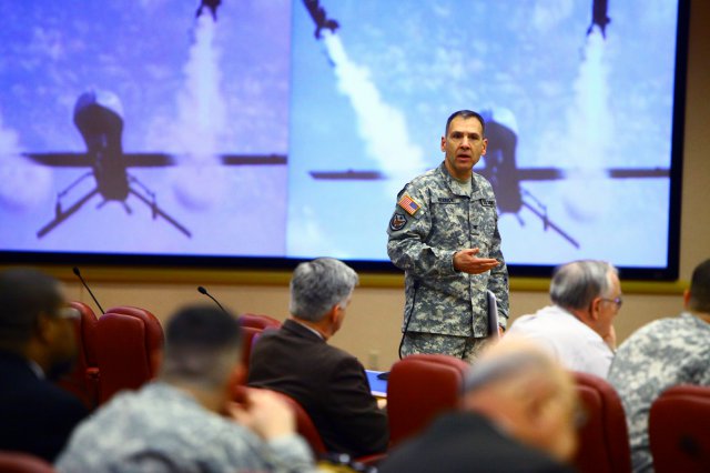 To address this threat, the Fires Center of Excellence hosted the first Counter Unmanned Aerial System coordination meeting Dec. 5-6, at the Fort Sill Conference Center. About 120 people attended the meeting, including representatives from the Navy, Air Force, Marine Corps, as well as the other Army centers of excellence, said Lt. Col. Matt Tedesco, Capabilities Development and Integration Directorate, FCoE/Training and Doctrine Command capability manager, Air Defense Artillery Brigade, in an email interview.