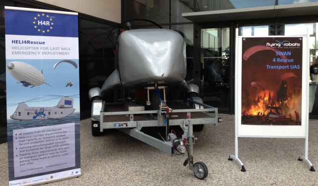 Flying Robots S.A., based in Geneva, Switzerland, participates, thanks to Pôle Pegase, in an European project designated “H4 Rescue”, defining requirements for Large VTOL (FTH Eurocopter), or Very Short TOL Transport RPAS (Flying Robots S.A.), or a Large Airship (Euro Airship), used for transporting loads to crisis sites (last mile). In particular, it examines their deployment in civil emergency scenarios, like fires, floods, earthquakes, and environmental disasters.