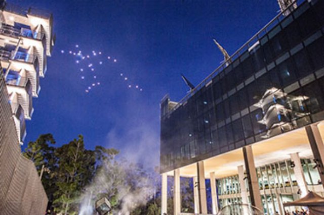 Photo: A swarm of 30 small UAS took to the sky over QUT as part of the university’s robotics extravaganza, Robotronica