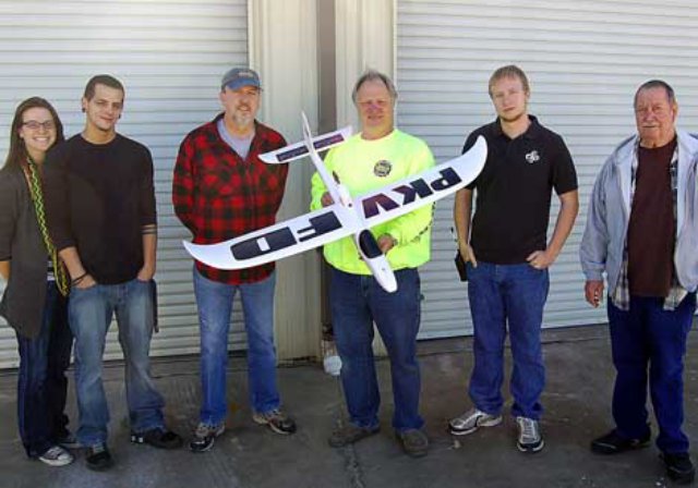 Photo: Left to right – Lauren Newton, Nick Stuckey, both with UAS; Craig Hutson, PK East VFD; Jerry Stuckey, UAS; Aaron Watts, PK East VFD; and Lon French, a veteran remote aircraft pilot who offered to help teach piloting skills. Credit:Mark Engebretson