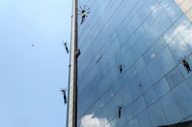 The project aims to impact business-district situated executive males who have little time to go to stores, by flying the items to them, up the facades of commercial buildings.