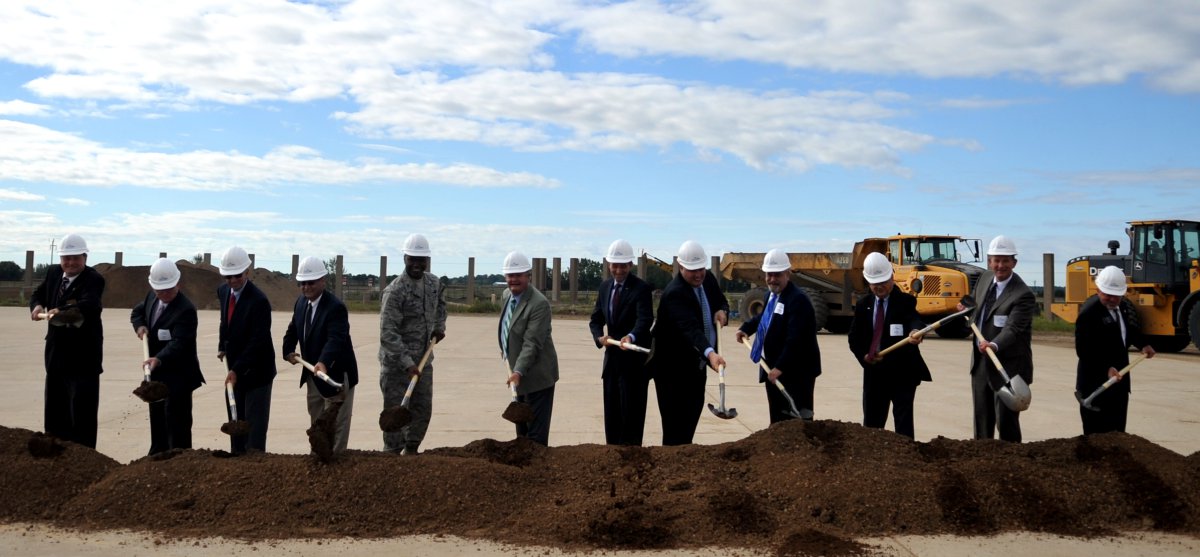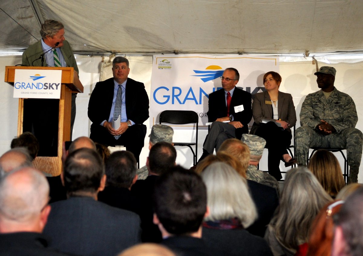 North Dakota Governor Jack Dalrymple delivered the keynote address. Tom Falck, Grand Forks County commissioner, and Thomas Swoyer, Grand Sky Development Co. president, offered remarks as well ahead of the groundbreaking.