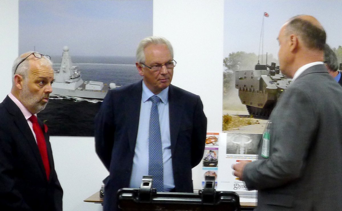 Photo: Bob Dalgleish discusses Roke’s capabilities in cellular communications technology with Lord Maude, Minister of State for Trade and Investment, and Paul Winstanley, the UKDSC Innovation Director.