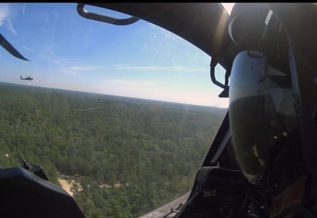 Photo: Chief Warrant Officer 3 Adam Kozel, Company A, 1st Battalion, 3rd Aviation Regiment, 3rd Combat Aviation Brigade, watches from the cockpit of his aircraft as an AH-64 Apache attack helicopter fires a Hellfire missile at a target that was laser designated by an MQ-1C Gray Eagle unmanned aerial system at the Multi-Purpose Range Complex on Fort Stewart. – Chief Warrant Officer 3 Adam Kozel/U.S. Army