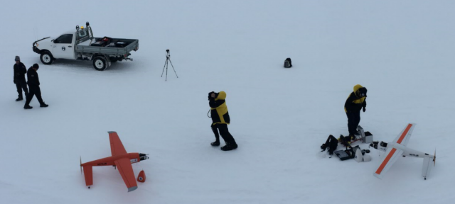 Flight base was the Australian Wilkins Aerodrome in the south-east of Antarctica. From Wilkins Aerodrome, the team launched Tiburon Jr. and collected valuable testing and environment data. Battling harsh weather and constantly changing conditions, the team flew Tiburon Jr. several times allowing tests of all aspects of our UAV platform. “These flights provided us with valuable insights into cold weather flight characteristics. We successfully demonstrated that our onboard flight system is hardened to the proper amount for the harsh environment”, mentioned Bass.