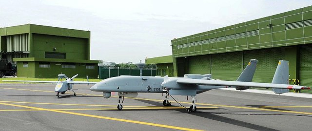 Top Photo: Minister for Defence Dr Ng Eng Hen (third from left) congratulating Chief of Air Force Major-General Mervyn Tan (second from left) after unveiling a plaque to commemorate the achievement of Full Operational Capability status by the Heron 1 UAV. Credit: MINDEF