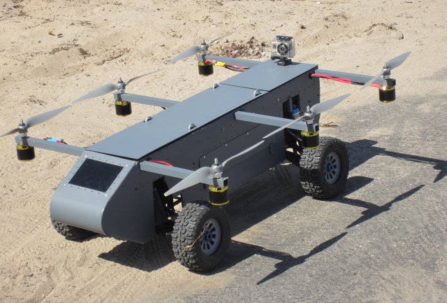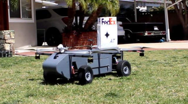 It is believed this is the first successful test of its kind. This vehicle is called the Panther sUAS Air/Ground Robot. The Panther package delivery robot can uniquely drive like a car and fly like a helicopter while carrying payloads.