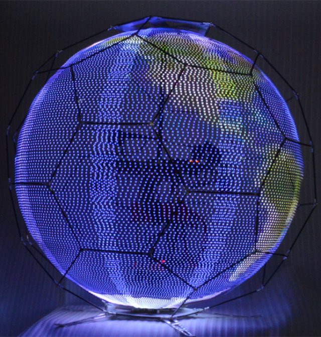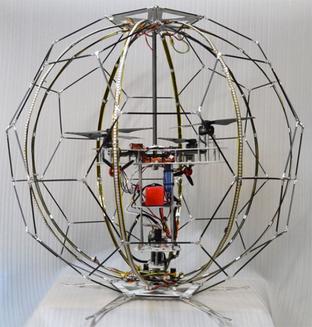 The maximum diameter of the spherical frame is about 88 cm and the entire device, including the drone, weighs just 3.4 kg. The display measures 144 pixels high and 136 pixels wide (horizontal circumference).