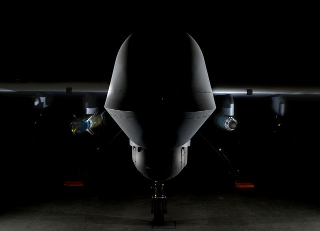 Photo: An MQ-9 Reaper is loaded with a GBU-12 laser-guided bomb on the left and a GBU-38 Joint Direct Attack Munition on the right April 13, 2017, at Creech Air Force Base, Nevada. (U.S. Air Force photo by Senior Airman Christian Clausen)