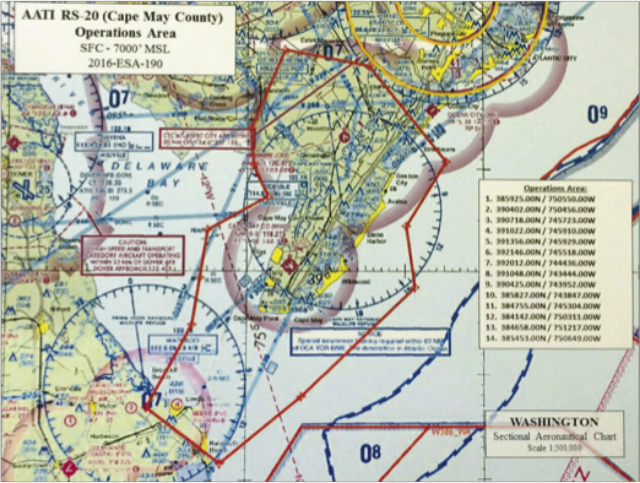 The craft operated under a Certificate of Authorization (COA), issued by the Federal Aviation Administration, which regulates all aspects of civil aviation. The COA was issued to Cape May County for an 800-square mile area to 7,000 feet to conduct missions that will serve public purposes such as emergency response. Unlike the “Part 107 Rules” issued by the FAA in 2016 that allow aircraft under 55 pounds to fly below 400 feet in close proximity to the pilot, COAs allow aircraft to operate at far greater distances and at much higher altitudes. For example, the RS-20 UAS used in this exercise weighs 175 pounds and flies many miles down range.