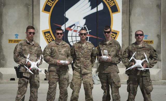 The Air Force’s 455th Expeditionary Security Forces Squadron here teamed up with a researcher from the Air Force Research Lab to teach airmen how to pilot drones and use them to train coalition forces on how to react to them on the battlefield.