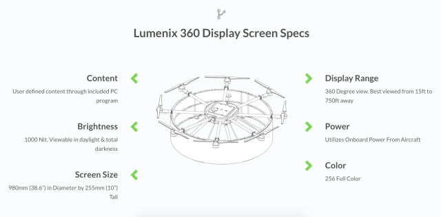 The LED billboard drone, technically called the “Lumenix 360”, was birthed when Watts noticed how impressed the casual citizen was by standard, basic drones being used for filming rockets he and his friends would shoot off at Cape Canaveral.