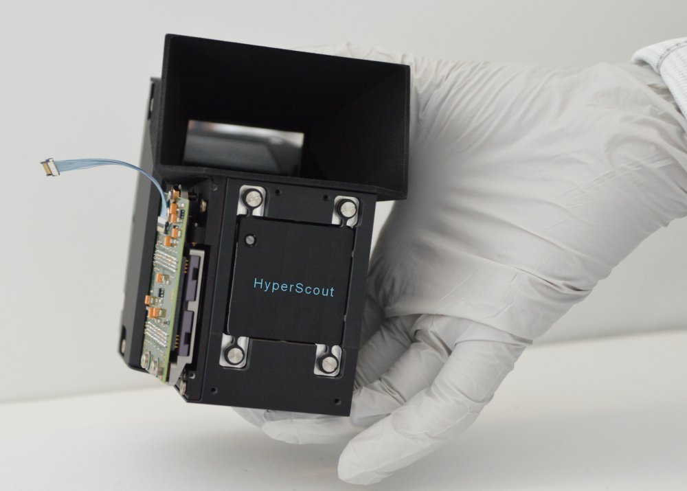 The initial approach uses a variable filter in front of the detector, creating an instrument as compact as a standard colour camera and therefore suitable for use on small satellites and drones. One is used by Dutch Cosine Research in their HyperScout camera for the GomX-4B CubeSat, to be launched this year.