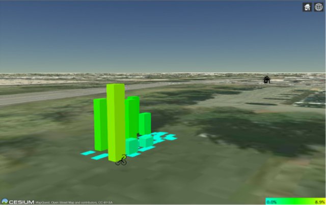 For the demonstration in June, NevadaNano redesigned their Molecular Property SpectrometerTM (MPS) system to sense multiple chemicals in a small, 110-gram package. The University of Utah developed an advanced quadcopter aerial robot with up to 40-minute flight times. The robot includes LIDAR object sensing for collision avoidance, precision GPS with programmable waypoints for autonomous flight through a course at programmed altitudes, and auto take-off and auto landing capabilities. In the current project phase, the team demonstrated the aerial system flying to a suspected chemical plume, measuring the presence of hazardous gases and automatically mapping the gas plume in an interactive map on a wirelessly connected ground computer.
