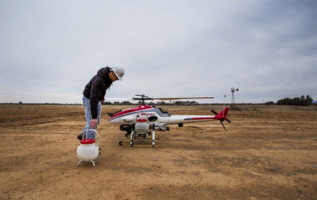 Yamaha’s RMAX, an unmanned helicopter, is already being used in other countries for spraying applications. In the U.S., the RMAX has been used at vineyards and orchards to apply fungicides or to help dry plant leaves (via downdraft currents).