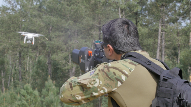 The DroneGun MKII is currently in the advanced stages of trials in the United States as a drone deterrent likely to be used mostly by special forces to jam hostile aerial drones up to 2km away. The rifle-shaped device, which can be operated by a single person and comes with a power pack backpack, has the ability to scramble video transmission back to the drone operator and force the drone to land.
