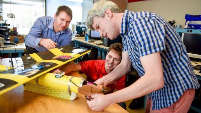 Bryant, Weisler and Stewart (from left to right), with a prototype of the EagleRay