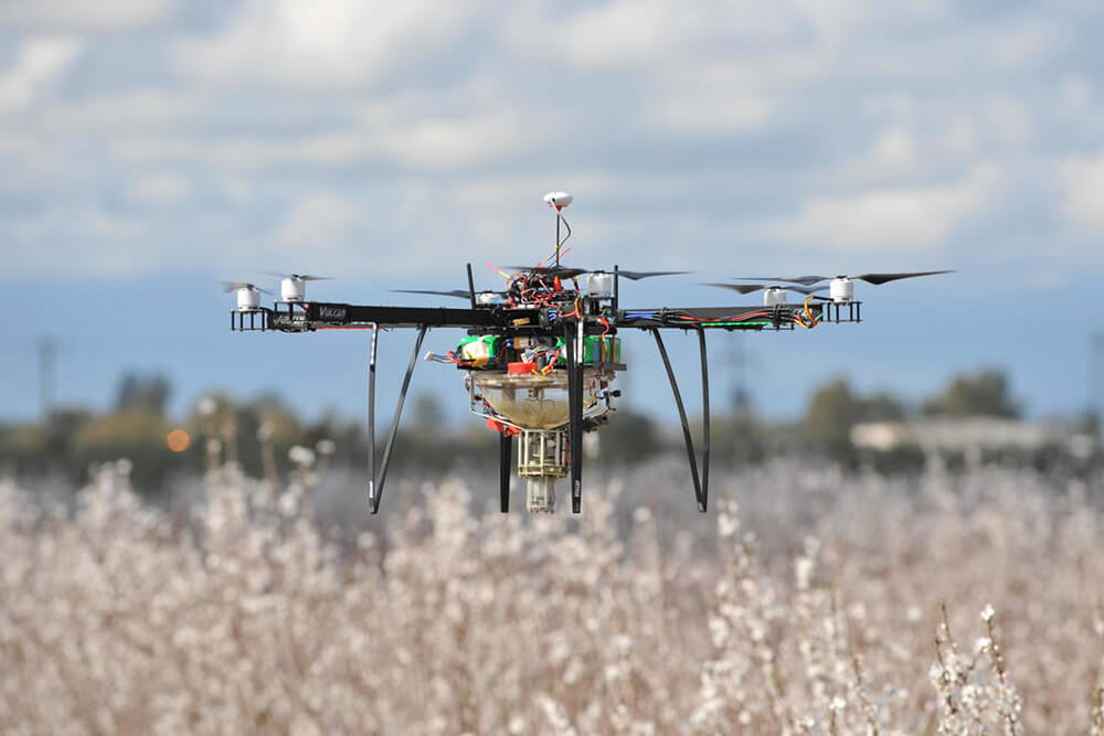 DropCopter of Corning, California, works on the automated pollination of orchard crops via unmanned aircraft systems (UAS). It strives for farming efficiency, the promotion of new technologies and healthy crop yield growth.