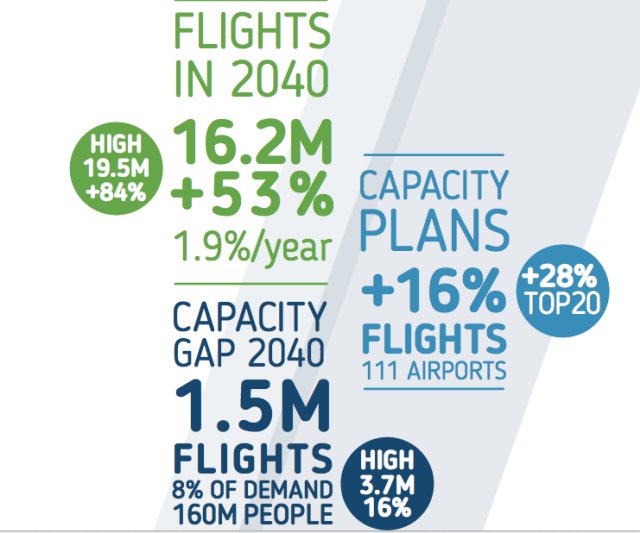 He stated “Europe is already struggling to cope with the levels of traffic this year. Our most likely scenario predicts a growth of 1.9% a year between now and 2040. That means 16.2 million flights a year.