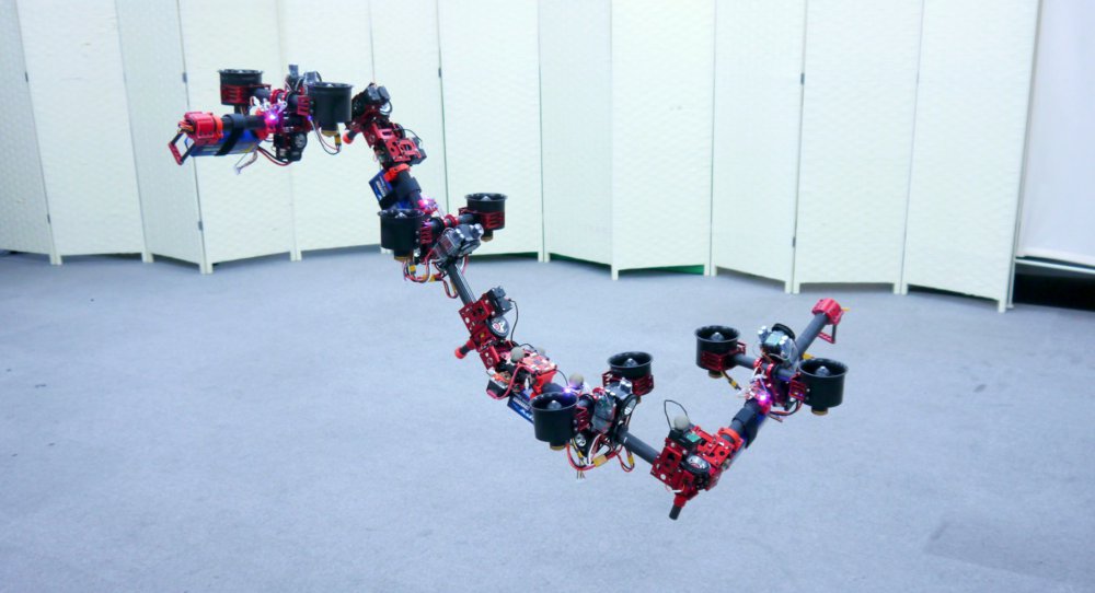 It’s a modular flying robot powered by ducted fans that can transform literally on the fly, from a square to a snake to anything in between, allowing it to stretch out to pass through small holes and then make whatever other shape you want once it’s on the other side.