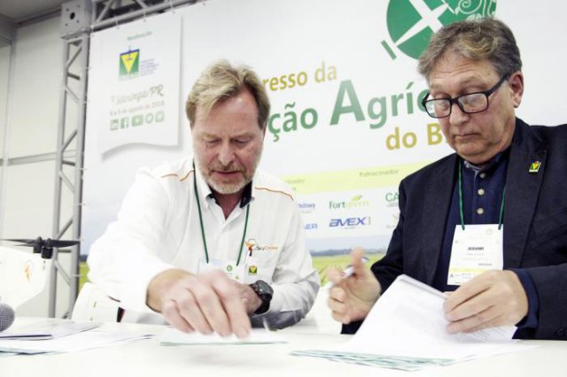 The partnership, unprecedented in Brazil (and probably in the world) was signed during the Congress of Agricultural Aviation of Brazil (SINDAG), which has ended august 9th after receiving 89 expositors and 2100 visitors. The possibilities of incorporating drones into the fleets of airplanes were also presented in a SkyAgri speech on Wednesday evening to businessmen present at the Congress.