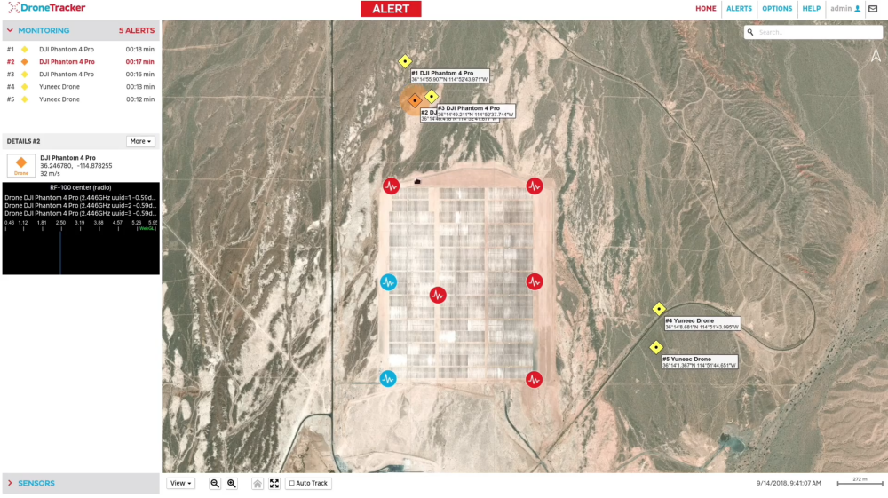 Dedrone’s software is a machine learning network using information from a proprietary database, DroneDNA. DroneTracker gathers intelligence from various sensors, including radio frequency and Wi-Fi scanners, microphones, and cameras, DroneTracker 3.5 can detect drones over a mile away from a protected site and determines the communications protocol of the drone, its flight path and the location of the pilot.