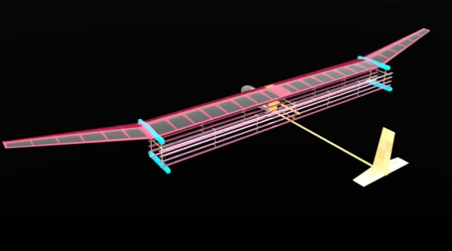 The team’s final design resembles a large, lightweight glider. The aircraft, which weighs about 5 pounds and has a 5-meter wingspan, carries an array of thin wires, which are strung like horizontal fencing along and beneath the front end of the plane’s wing. The wires act as positively charged electrodes, while similarly arranged thicker wires, running along the back end of the plane’s wing, serve as negative electrodes.