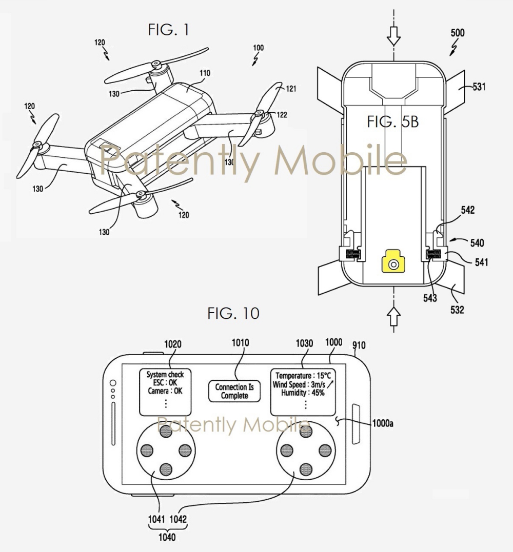 Samsung’s patent application begins by stating that unmanned aerial vehicles have been developed and utilized for military purposes for information collection and reconnaissance in areas where user access is difficult, the unmanned aerial vehicle has recently been equipped with an image capturing features (cameras), resulting in the commercialization and popularization of the unmanned aerial vehicles.