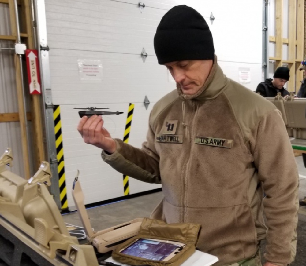 “It’s a small UAS, for squad level, enabling Soldiers to get a picture of what’s around the corner, what’s over the hill,” said Nathan Heslink, assistant product manager, Product Manager Soldier Maneuver Sensors (PM SMS), Project Manager Soldier Sensors and Laser (PM SSL), Program Executive Office (PEO) Soldier.