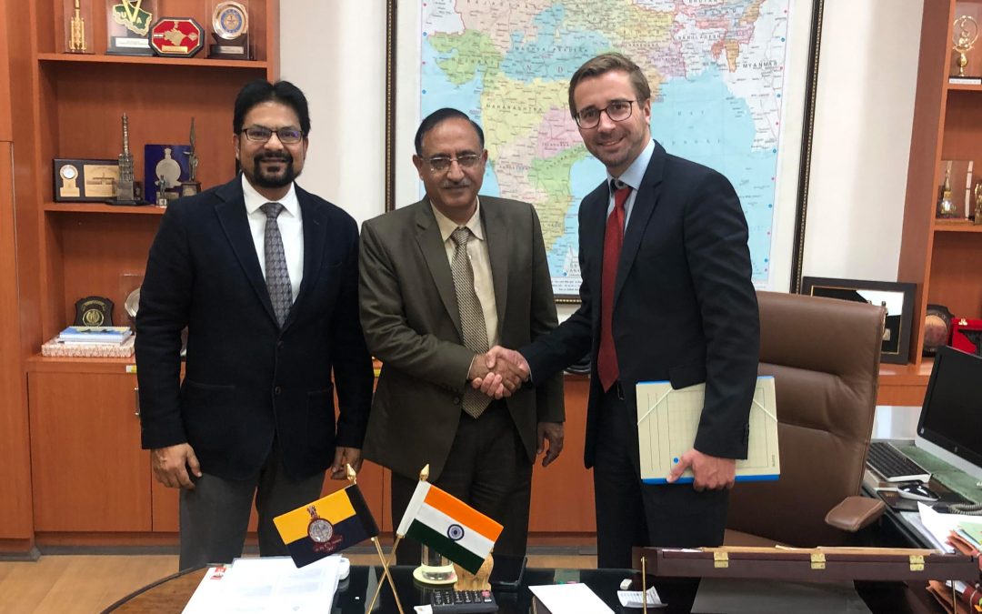 Sajid Mukhtar (MD, API-Roter Group) with Surveyor General Girish Kumar and Florian Seibel (CEO Quantum-Systems GmbH)