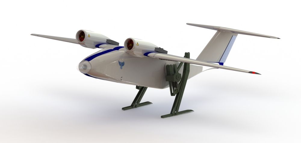 The drone will be used for two main missions – delivery of cargo and monitoring agriculture, forestry, oil and gas infrastructure. The design took around one year from the initial idea to a complete prototype. The legs accelerate the drone up past its minimum flight speed allowing it to then fly like a normal aircraft. They also act as springs and shock absorbers for landing.