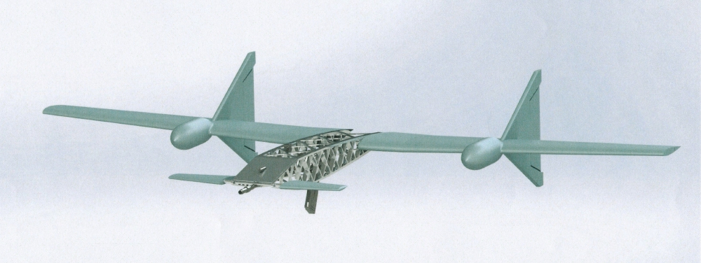 This still-unmanned interceptor is a tail-sitting drone. With two rotors, it can take off and land vertically, and then level off to fly horizontally, the lifting rotors now working as propellers. It has a wingspan of nearly 10 feet, a total weight of around 51 lbs, and a total flight time of 40 minutes. The flight time is short for vehicles of its size but longer than that of the cheaper commercial quadcopters that are its likely targets.