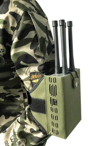 The CT-1040H-DJ wearable jammer 28W specialises in blocking 2.4Ghz, GPS, and 5.8Ghz signals, which are used by most commercial UAV drones and other remote operated vehicles for their remote controls. This jammer is designed to be at hand for infantry units whose main job is not the drone surveillance and hunting, but for basic anti-drone and remote operated vehicle protection on terrain.