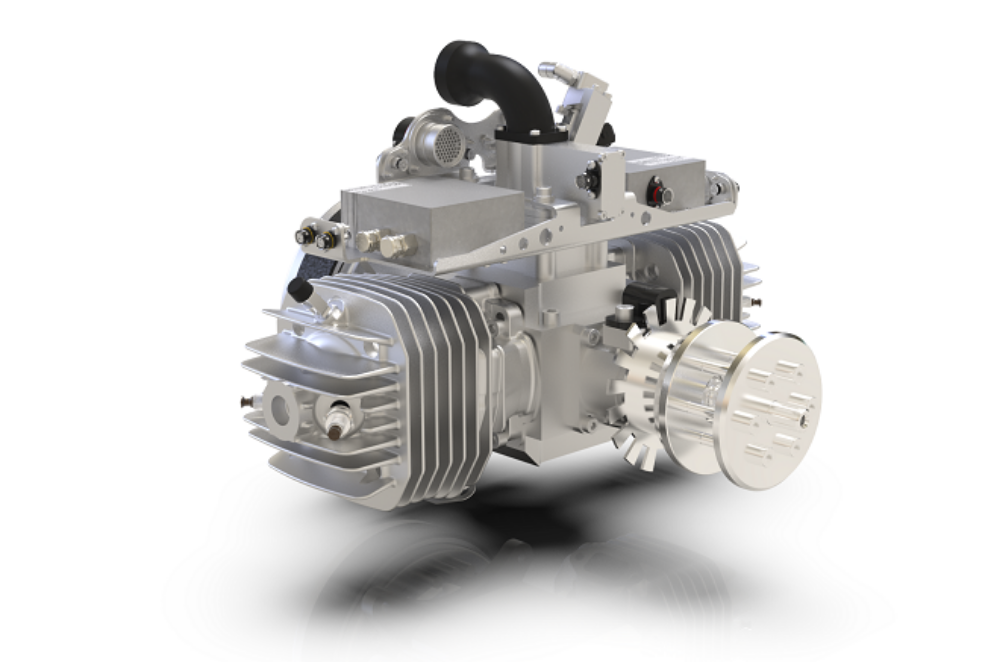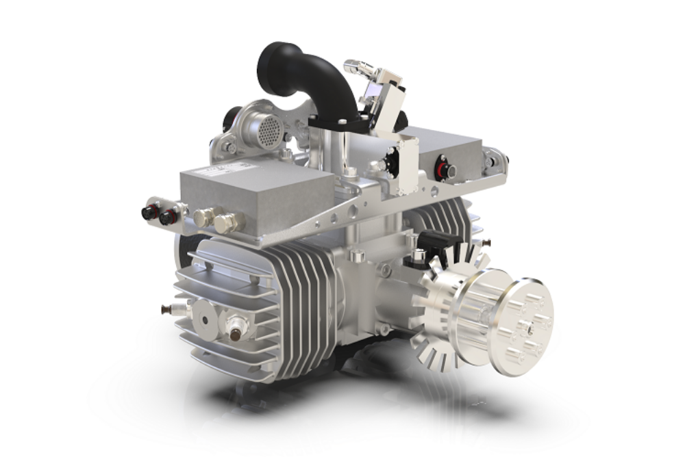 “With the SP-28 this is not possible due to the small cylinder volume of 28 ccm” continued Schudt. Therefore, the next larger single-cylinder engine is provided with two spark plugs. The SP-55 series, with 55ccm, can be operated both with a carburettor as well as with an injection system. Both the carburettor and the injection system are positioned at the side of the crankcase and inject directly into it. As a result, a generator or starter generator can be positioned on the rear exposed drive shaft, which enables a very compact design of the engine. In addition, the engine is equipped with the HKZ215 ignition system and the ECU030.