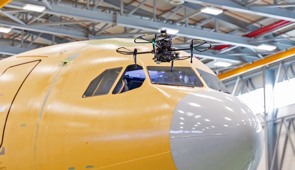 The technology relies on drones equipped with sensors and high-definition cameras to scan, in a matter of hours and not days, the exterior of an aircraft undergoing a maintenance inspection. A secured connection allows data and information generated to be displayed on tablets and augmented reality glasses, allowing staff to quickly identify and apply maintenance procedures and corrective actions while ensuring all inspection and maintenance procedures are formally and fully recorded on the maintenance log. Not only does this technology reduce the maintenance inspection time, it supports the early detection of defects and helps guarantee quality and post-maintenance airworthiness.