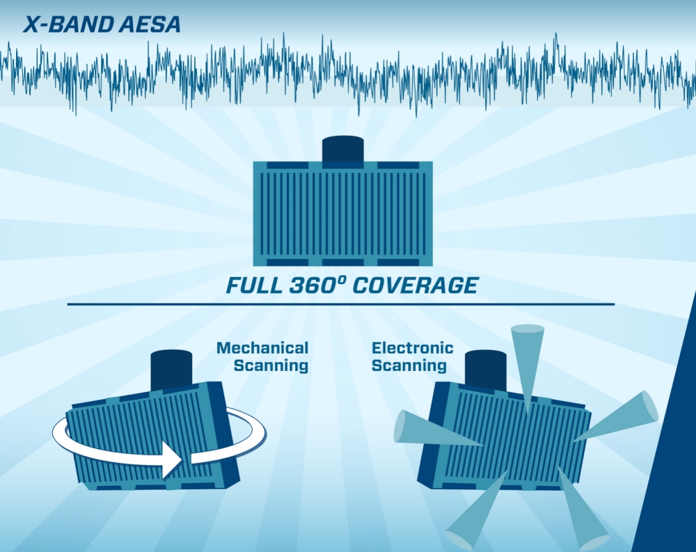 MFAS active electronically scanned array radars are designed to provide a 360-degree coverage of littoral regions and open oceans to detect maritime targets.