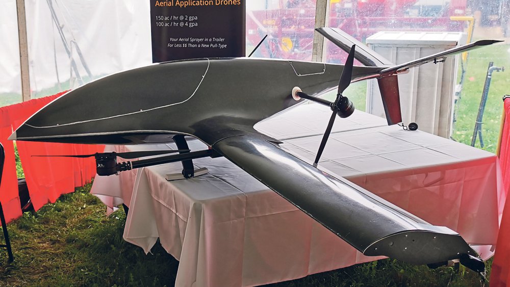 Application expert Tom Wolf, of Agrimetrix and sprayers101.com, said he was impressed with the drone when he came across it at Canada’s Outdoor Farm Show in Woodstock, Ont.