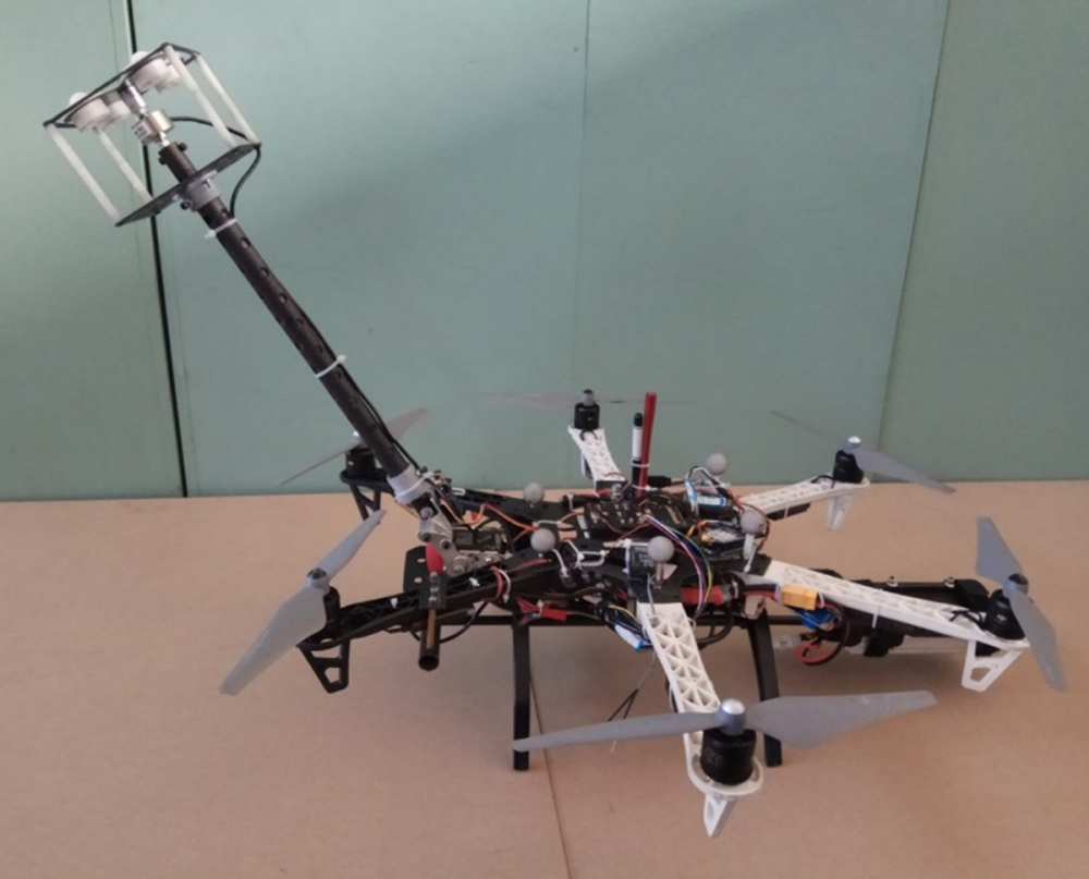 The new robot has six rotors and a single-degree-of-freedom manipulator cube-frame end effector. The device, with six hexagonal rotors, can “avoid obstacles and even jump over grooves on wall surfaces.”