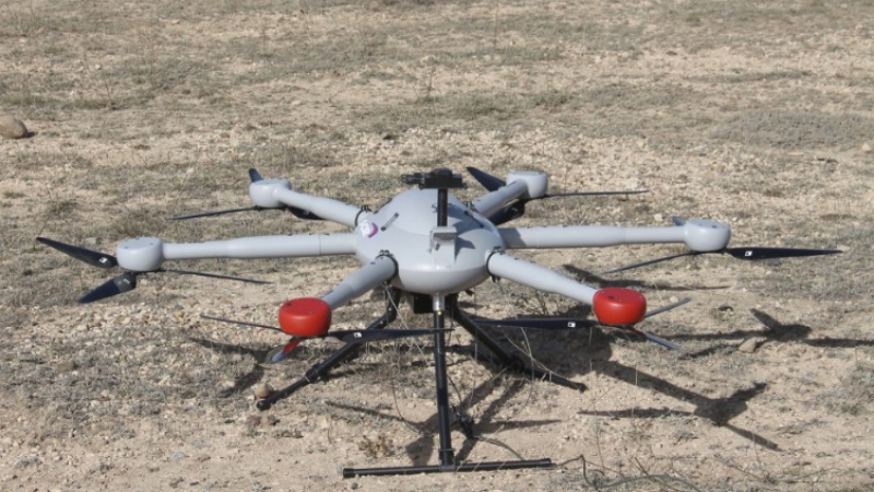 The tethered UAS features a carbon-fibre airframe and is aimed at the civil and military markets. It is described by the company as a “tri-propeller UAS” with a maximum take-off weight (MTOW) of up to 14 kg, including a 4 kg payload.