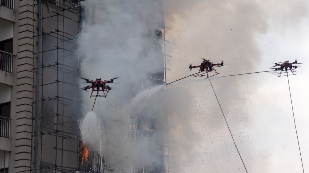 Fire Drill for High-Rise Firefighting Drones in China